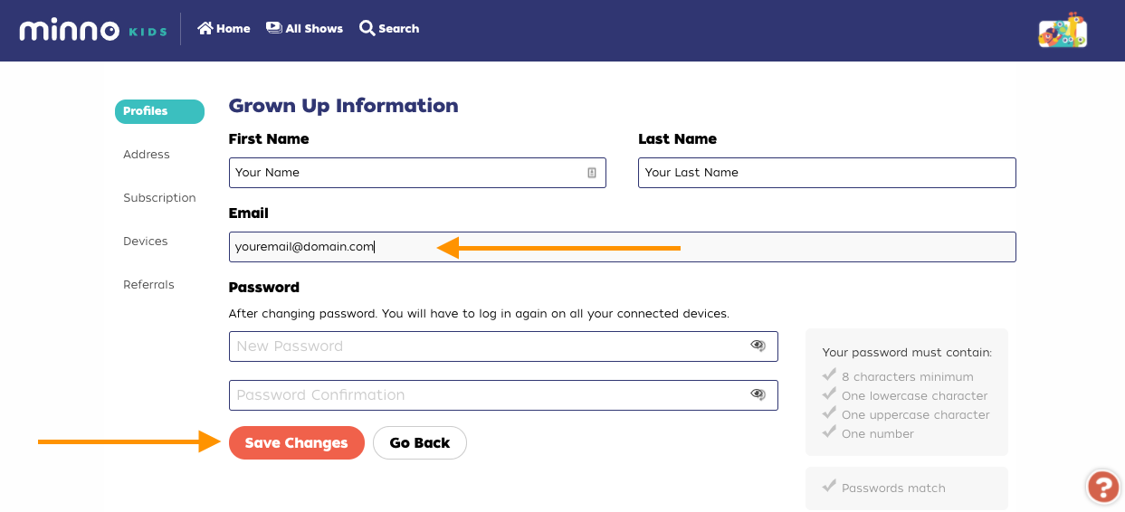 You can change your Minno email any time in your account settings by completing the following steps: