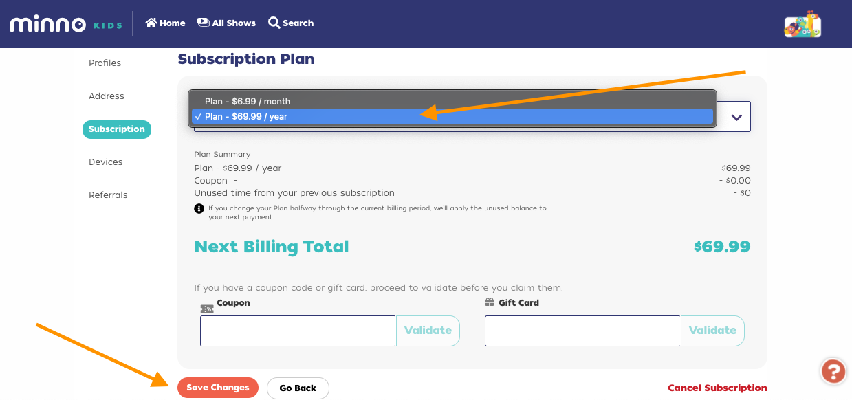 - Select the Annual Plan from the dropdown menu.