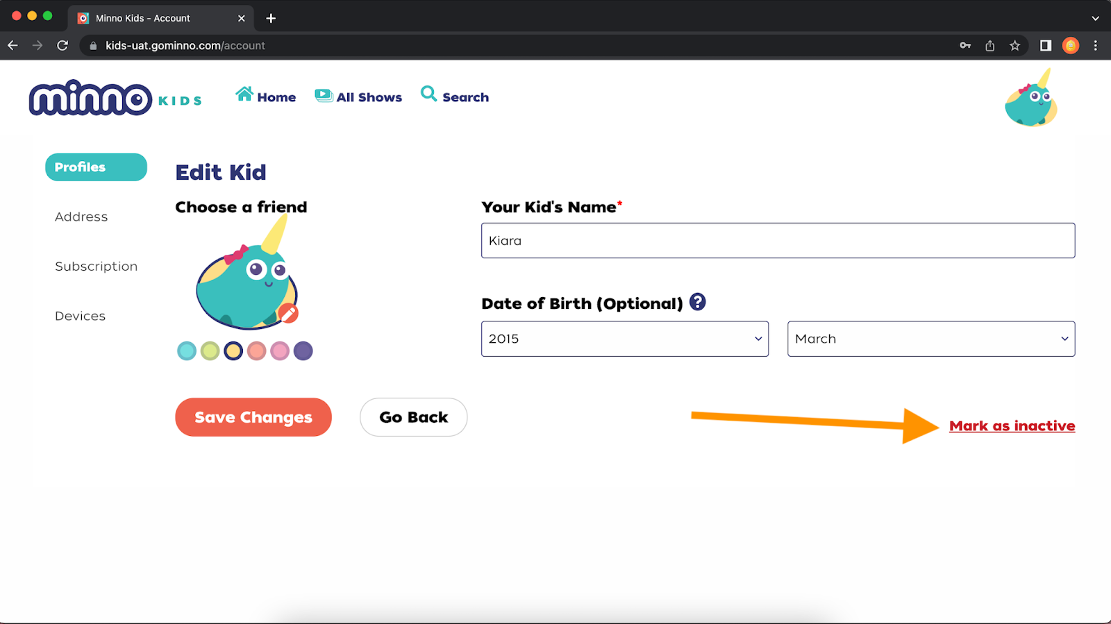 6. Click on "Mark as inactive"